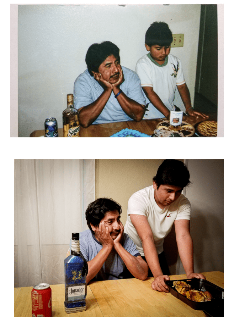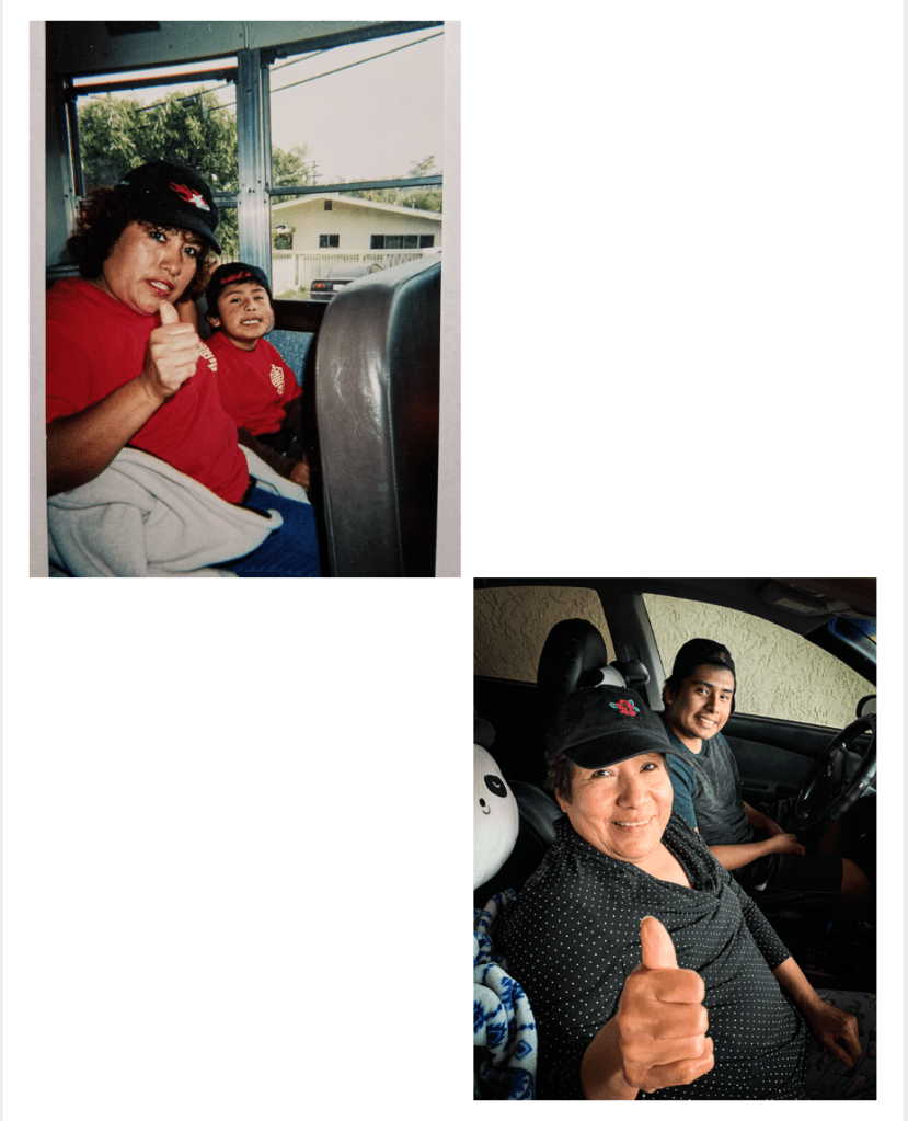 The original pictures are from a photo album that my parents have stored in their room. The two original pictures stood out to me the most because I can still remember when and what happened just by looking at it. Since I had old pictures of when I was a kid, I wanted to recreate these photos now that I’m all grown up. My approach to this project brought a lot of good memories to a point where I wanted to cry. The only family that I really have right now are my parents because I never got close with any other person from either side of the family. The one person that I was actually close to was my uncle, but he passed away a few years ago. Looking back at these pictures really show’s how time flies. Just by looking at how much we’ve changed from our appearance through out the years makes me smile. We’ve been through a lot, but we are still together. I’m glad I got to work on this project because it gave me some time to look back at the good times that I spent with my family. Recreating these pictures was a bit of a challenge because I was limited on time and places to go. I wanted to recreate the picture with my mom inside a public bus unfortunately due to covid-19 I had to recreate the image inside my car. With my dad’s picture, it was difficult to find the props that were in the old picture. Luckily I was able to at least get the same color of shirts. For the first image, my sister took the picture and the second picture my mom did. Since I was limited on time due to work I kindly asked my parents and sister to help me with this project after I came home from work. The first image was taken at around 5:45 p.m. and the lighting was not that great. It was also cloudy outside making the exposure more dim. The second picture was taken in the kitchen and I really hate the yellow light that we have on the chandelier. It makes the pictures look warm and and it was a challenge because I did not have better lighting. Lastly, for the images to appear the way it is, I used Lightroom Classic and then selected the “printer” tab in order for the images look like corner to corner and top to bottom.